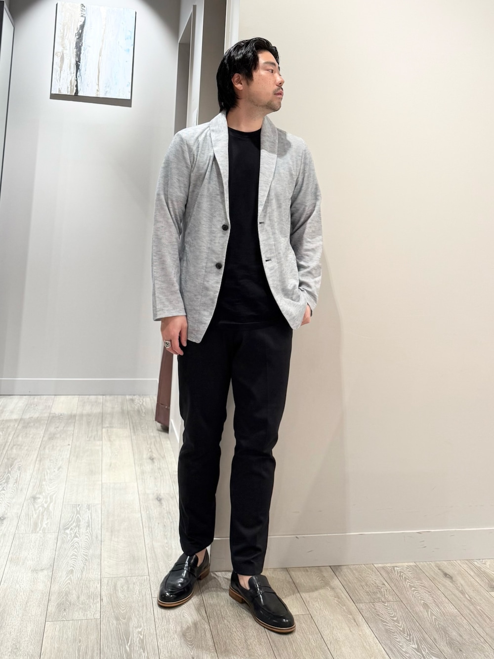 ao(アバハウス 佐野プレミアムアウトレット店(MEN'S))のブルゾン「【サマーニット】バーズアイ ショールカラー ジャケット / ニットジャケット」を使ったコーディネート