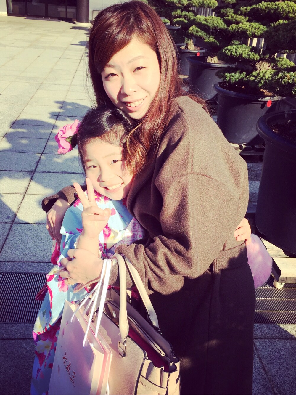 七五三と言う事で控え目にグリーンの 襟のついていないロングコートに ベージュのバッグを持ち、落ち着いた雰囲気に❤️ 始めたばっかりなので まだまだですが、楽しみながらコーデの 勉強していきます‼︎
