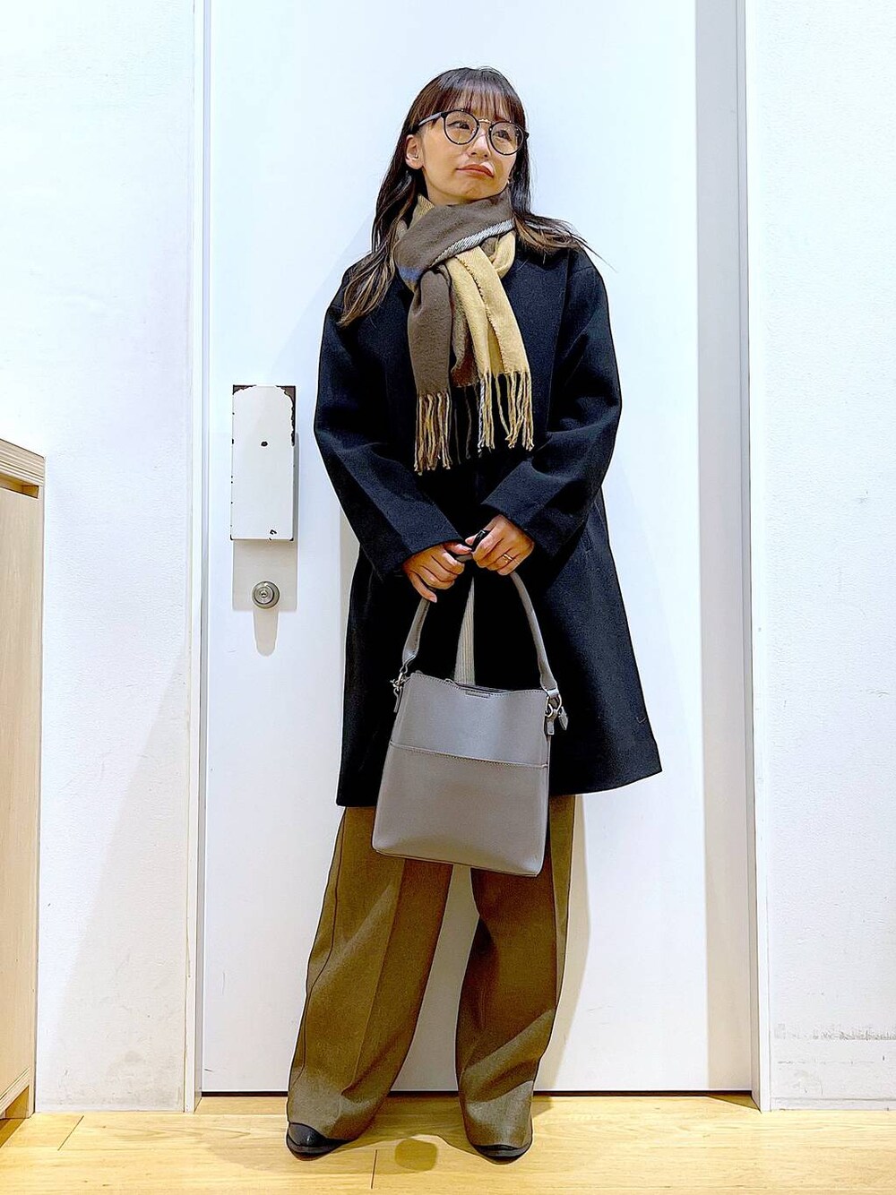 ご覧いただきありがとうございます** ノーカラーのコートはマフラーでアレンジ! 襟がないので巻きやすく窮屈になりません◎ ウーリテック素材で軽くて暖かいので、お仕事などのオンスタイルにもオススメです♡ 各アイテムのアップ画像も載せています☺︎ ぜひお試しください**