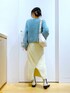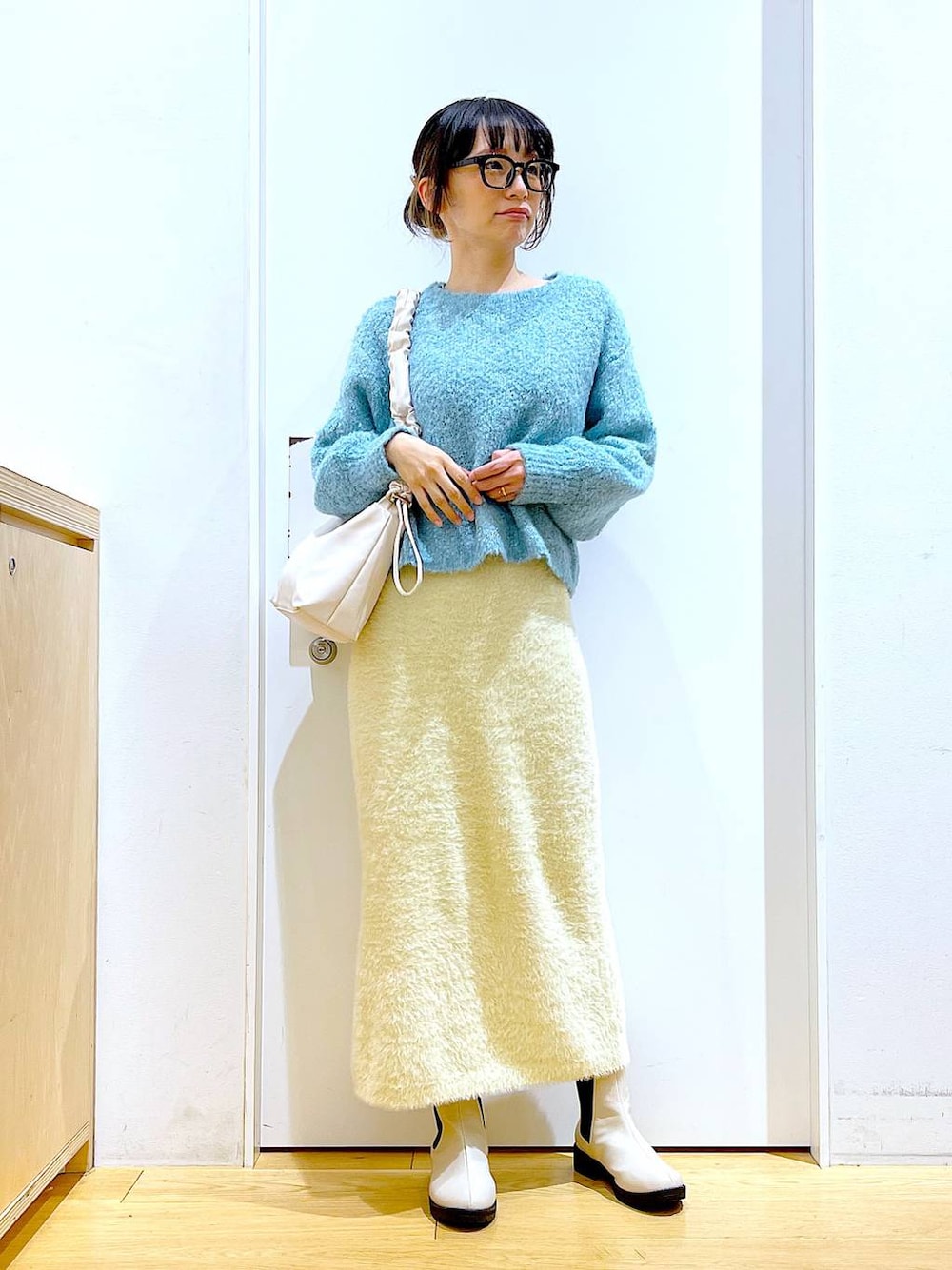 ご覧いただきありがとうございます** リアルバイコーディネートです♡ ラメの入ったブルーのニットがとっても目を惹きます! スカートもアイボリーを合わせて全体的に明るめのカラーでコーディネートしてみました☺︎ 各アイテムのアップ画像も載せています☺︎ ぜひお試しください**