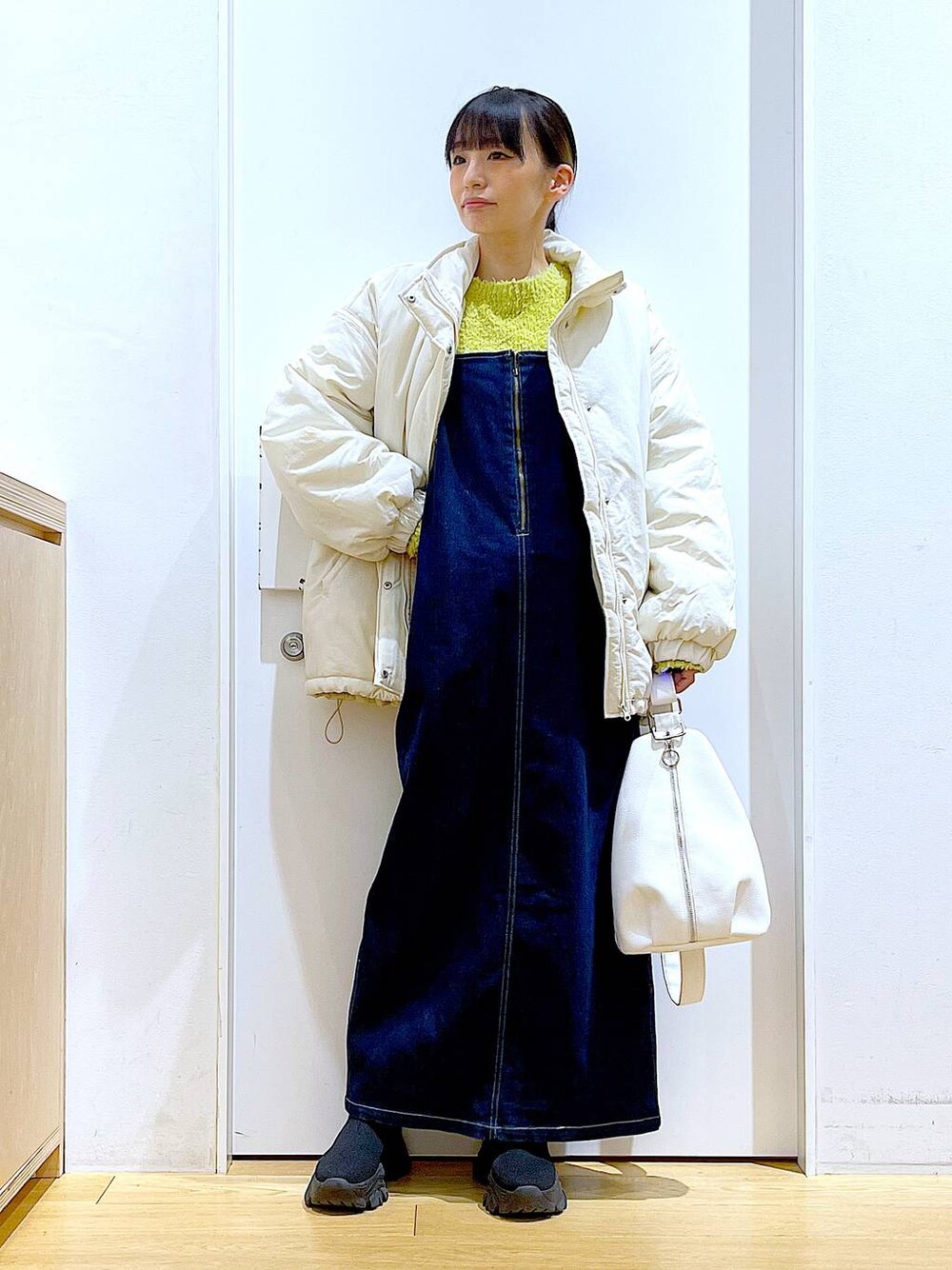 ご覧いただきありがとうございます** ◇デニムジャンスカ◇ Sサイズを着用しております♪ 身幅がスッキリしているので、幼くならずにスタイリングが出来ます◎バックスリットに仕様で足捌きもしやすく、おでかけの日にもオススメです! 各アイテムのアップ画像も載せています☺︎ ぜひお試しください**