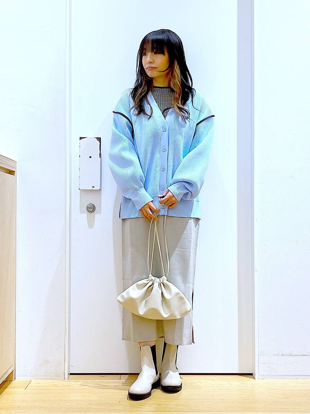 あおき@LAKOLE海老名(LAKOLE イオン相模原ショッピングセンター)のスカート「12GカシミヤタッチナローWジャガードスカート / 963446」を使ったコーディネート