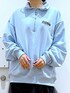 ご覧いただきありがとうございます** ◇ロゴハーフジッププルオーバー◇ Sサイズを着用しております♪ 着丈は少し長めなので、腰回りのカバーも出来ます◎ ポリエステルとコットンの混紡素材なので、強度もありシワになりにくいのも嬉しいポイントです♡ 各アイテムのアップ画像も載せています☺︎ ぜひお試しください**