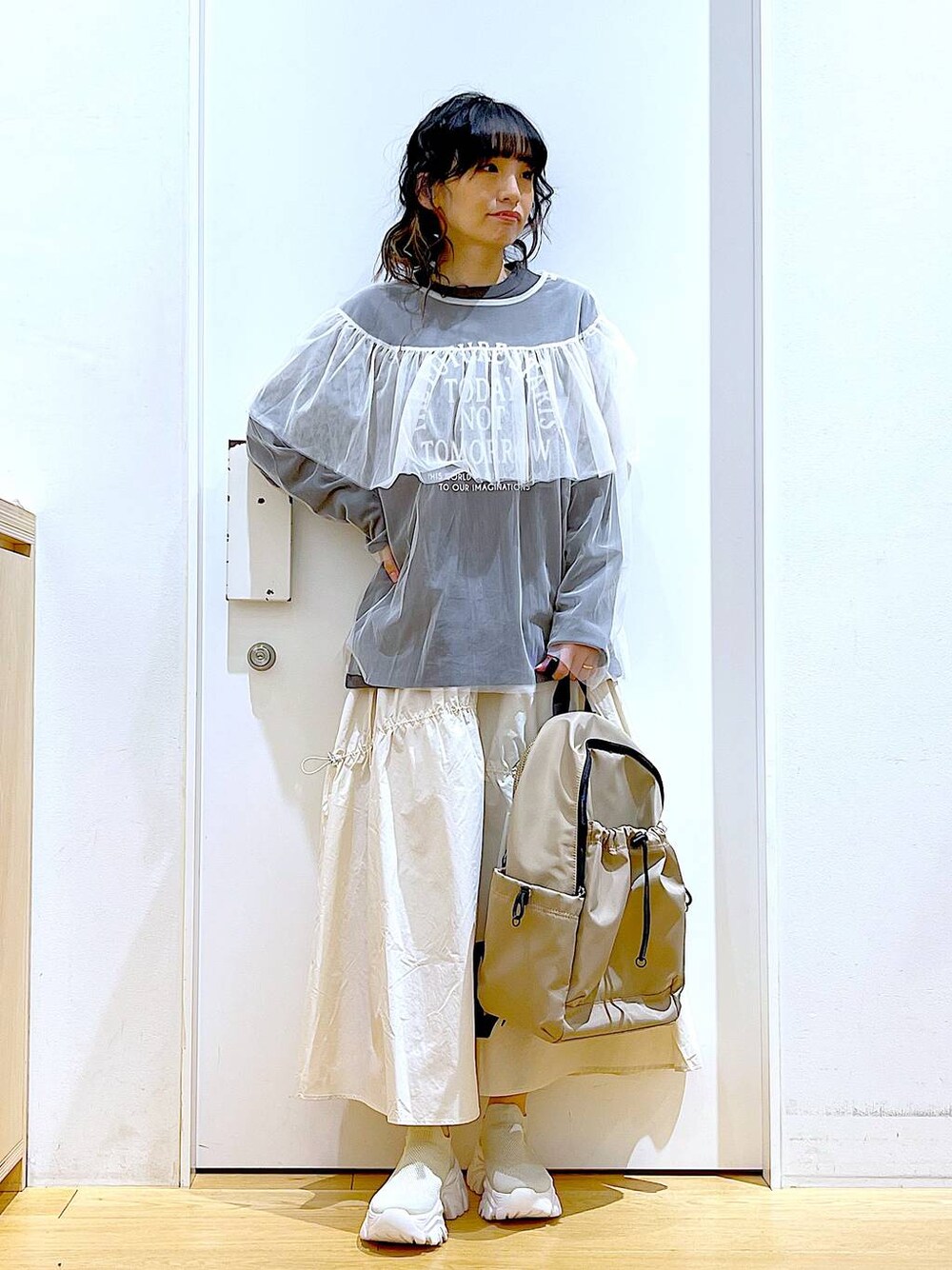 ご覧いただきありがとうございます** ◇ドロストティアードスカート◇ Sサイズを着用しております♪ ドロスト紐が付いているのでシルエットに変化が出せます◎ ウエストはゴム仕様で楽ちん!軽い素材でサッとお召しいただけます♡ 各アイテムのアップ画像も載せています☺︎ ぜひお試しください**