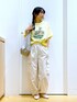 ご覧いただきありがとうございます** ◇フラワーモチーフプリントT◇ Sサイズを着用しております♪ 綿100%素材で肌触りも良いTシャツです♡ Sサイズでもゆったりとしていて、着丈も程よくあるので腰まわりをカバーできます◎ 各アイテムのアップ画像も載せています☺︎ ぜひお試しください**
