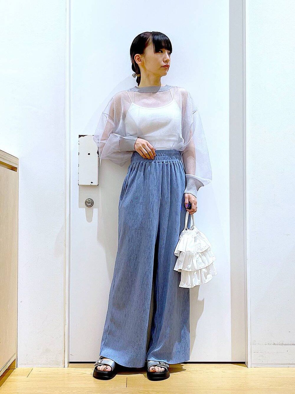 あおき@LAKOLE海老名(LAKOLE イオン相模原ショッピングセンター)のショルダーバッグ「ラッフル巾着2WAYショルダーバッグ / 104949」を使ったコーディネート