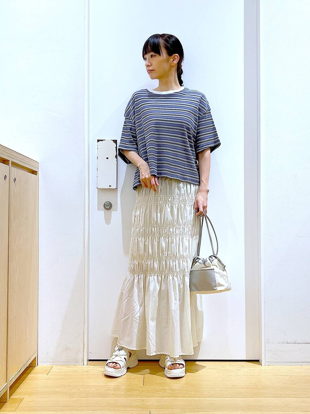あおき@LAKOLE海老名(LAKOLE イオン相模原ショッピングセンター)のショルダーバッグ「フロントフェイクレザーポケット巾着ショルダーバッグ / 108020」を使ったコーディネート