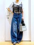 あおき@LAKOLE海老名(LAKOLE イオン相模原ショッピングセンター)のデニムパンツ「カーブシルエットデニムパンツ / 112952」を使ったコーディネート
