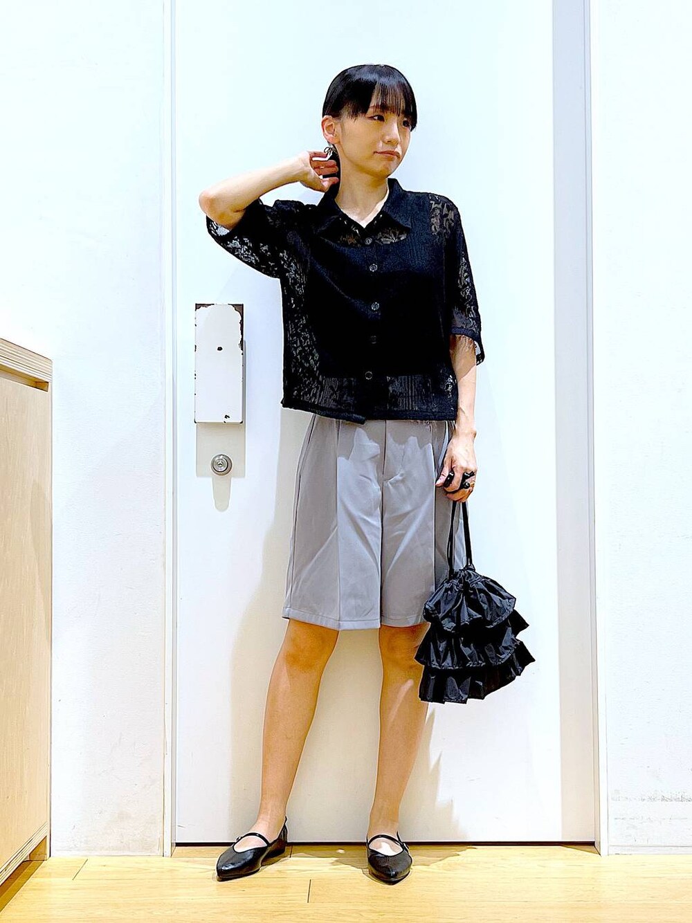 あおき@LAKOLE海老名(LAKOLE イオン相模原ショッピングセンター)のショルダーバッグ「ラッフル巾着2WAYショルダーバッグ / 104949」を使ったコーディネート
