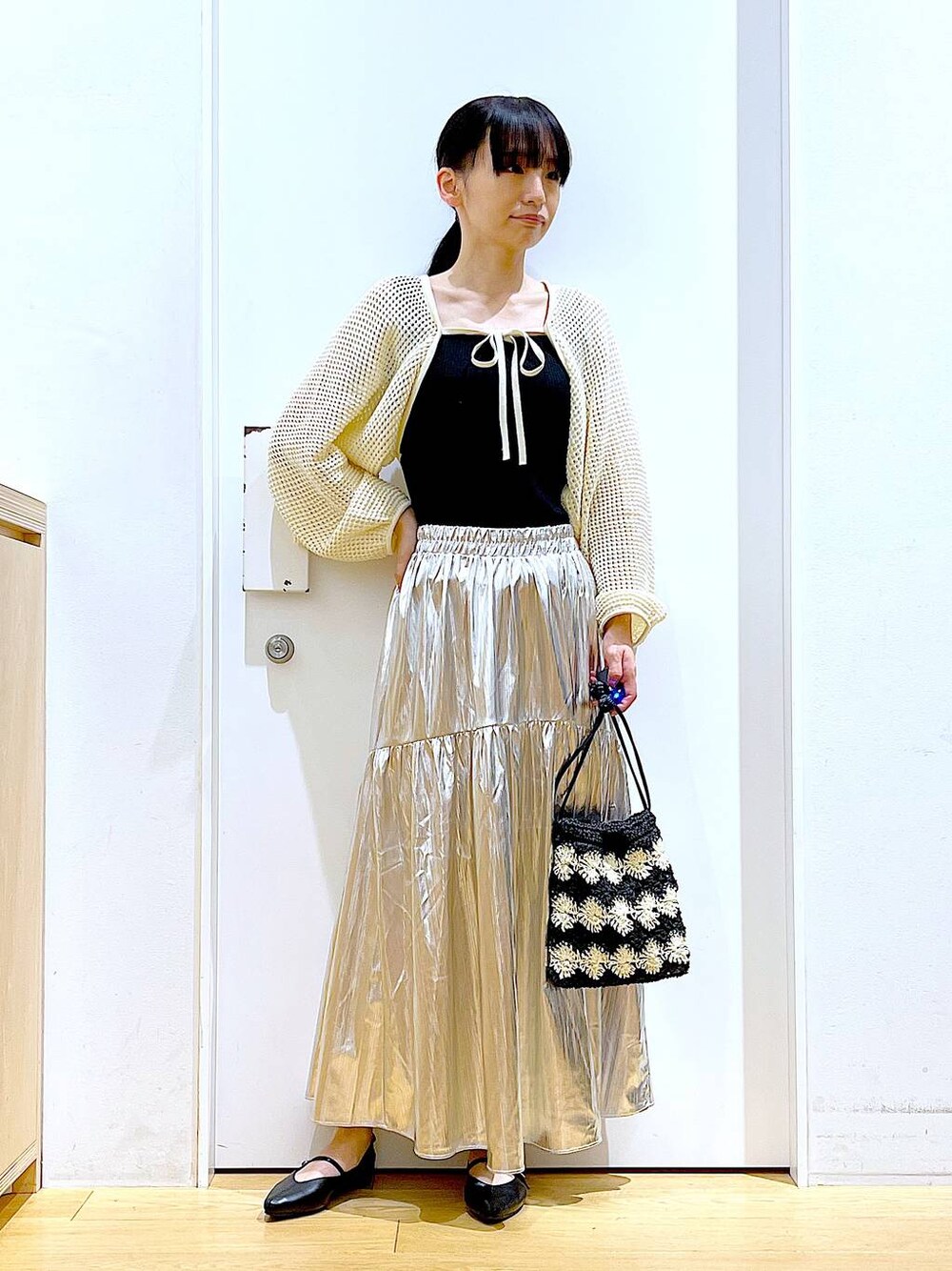 あおき@LAKOLE海老名(LAKOLE イオン相模原ショッピングセンター)のカーディガン/ボレロ「ラメメッシュニットボレロ / 115412」を使ったコーディネート