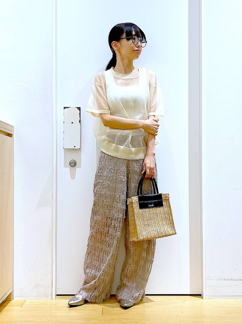 あおき@LAKOLE海老名(LAKOLE イオン相模原ショッピングセンター)のニット/セーター「ラメシアーニットプルオーバー / 113739」を使ったコーディネート