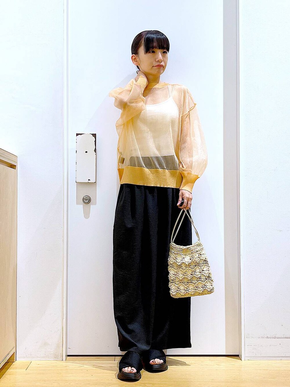 ご覧いただきありがとうございます** ◇2WAYラメシアークルーカーディガン◇ Sサイズを着用しております♪ 今回は背中ボタンにしてプルオーバーでコーディネートしてみました!お首まわりは窮屈さはなく、シアー素材なので涼しくお召しいただけます◎ 各アイテムのアップ画像や全角度、動画も載せています☺︎ ぜひお試しください**