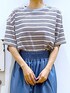 ご覧いただきありがとうございます** ◇マルチボーダー半袖TEE◇ Sサイズを着用しております♪ 身幅はかなりゆったりめですが、着丈がスッキリしているのでバランスよくお召しいただけます◎柔らかい着心地とマルチボーダー柄でラフなコーディネートにもオススメです♡ブルーのボーダーなのでボトムもブルーで爽やかコーデにしてみました!! 各アイテムのアップ画像や全角度、動画も載せています☺︎ ぜひお試しください**