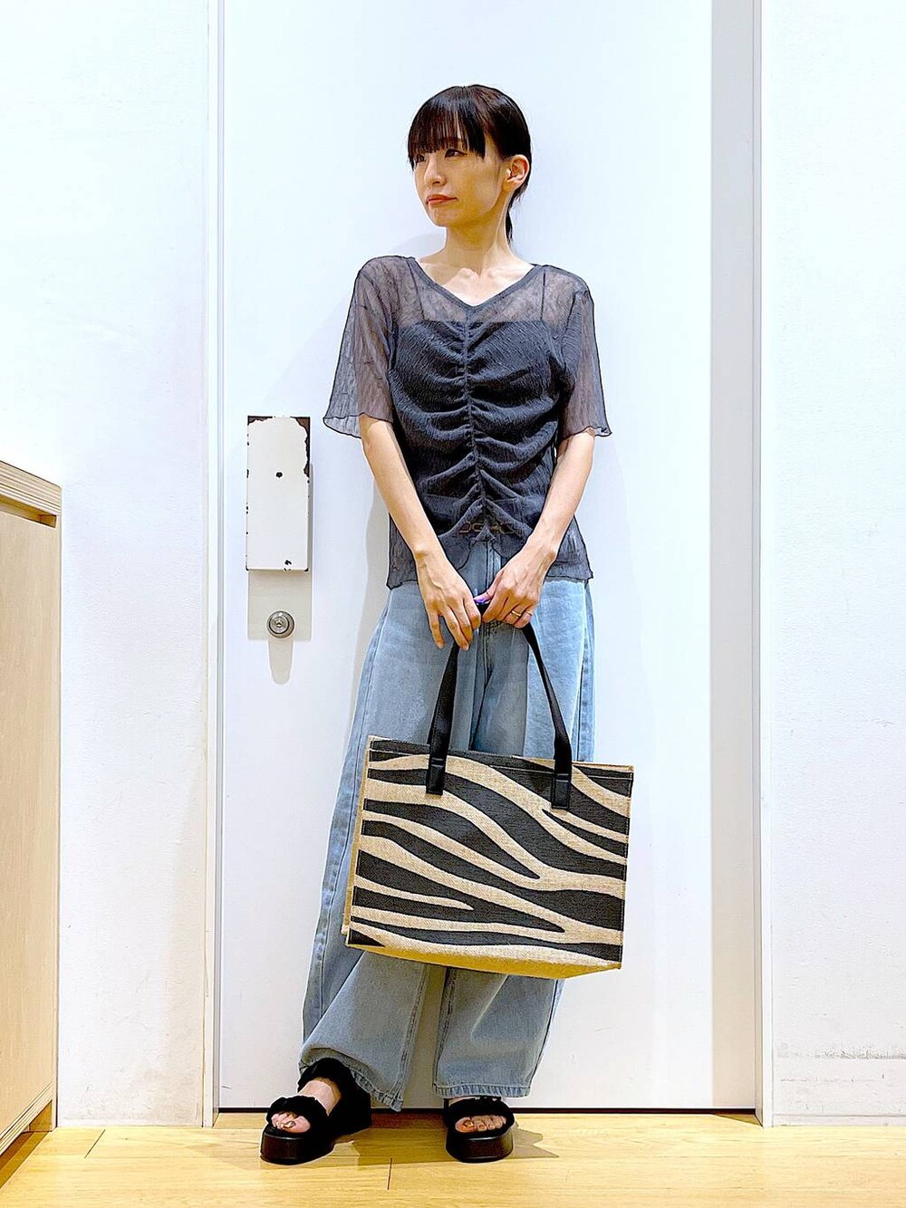 あおき@LAKOLE海老名(LAKOLE イオン相模原ショッピングセンター)のデニムパンツ「カーブシルエットデニムパンツ / 112952」を使ったコーディネート