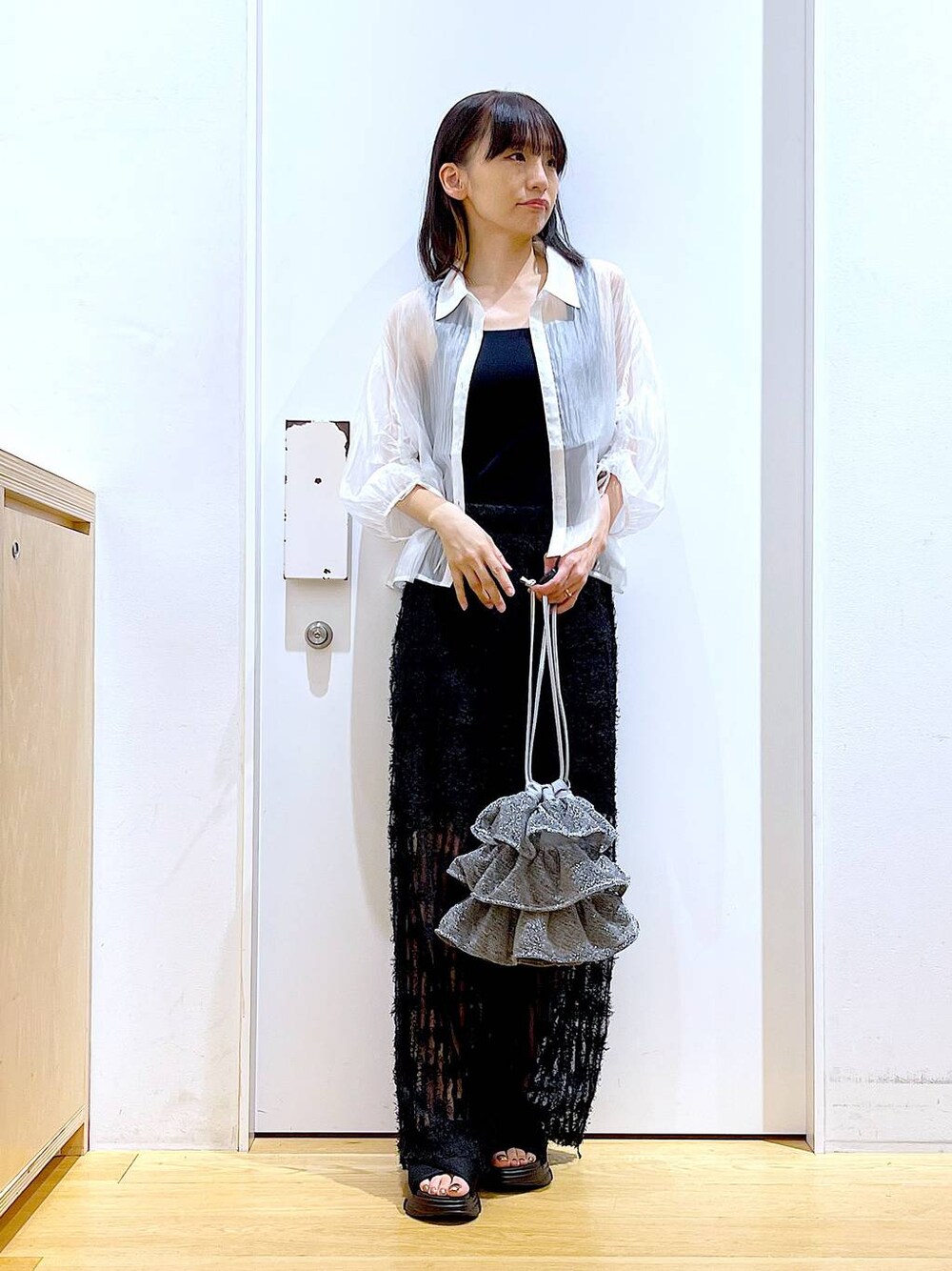 あおき@LAKOLE海老名(LAKOLE イオン相模原ショッピングセンター)のショルダーバッグ「ラッフル巾着2WAYショルダーバッグ / 104949」を使ったコーディネート