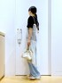 あおき@LAKOLE海老名(LAKOLE イオン相模原ショッピングセンター)のデニムパンツ「カーブシルエットデニムパンツ / 112952」を使ったコーディネート