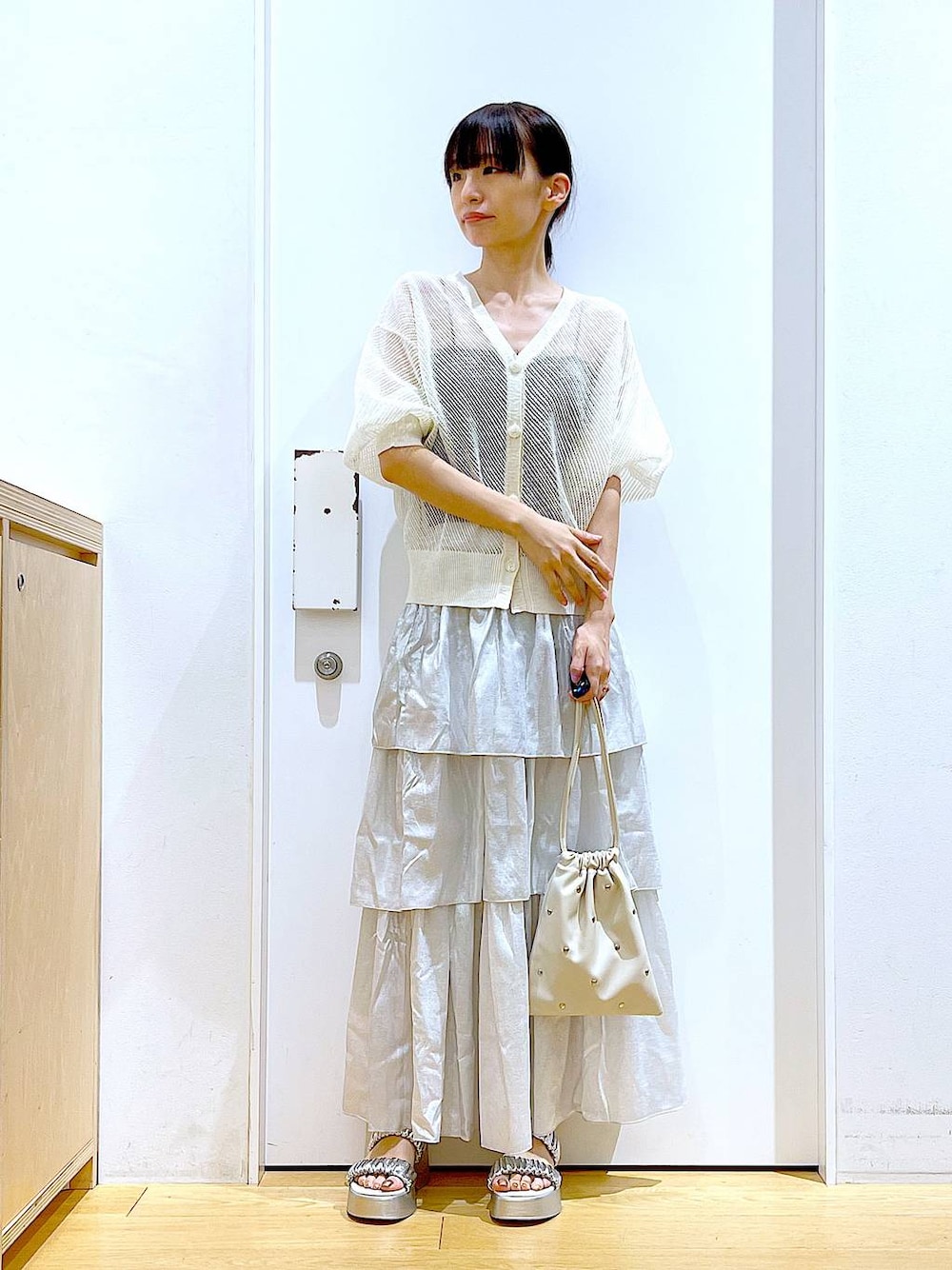 ご覧いただきありがとうございます** ◇メタリックフリルスカート◇ Sサイズを着用しております♪ 程よい光沢感のあるフリルスカートです♡ウエスト部分は後ろがゴムなので楽な穿き心地◎フリルも広がらずにスッキリ見えします!Tシャツ合わせだとカジュアルスタイルのワンポイントにもなるのでデイリーコーディネートにもオススメです☺︎ 各アイテムのアップ画像や全角度、動画も載せています☺︎ ぜひお試しください**