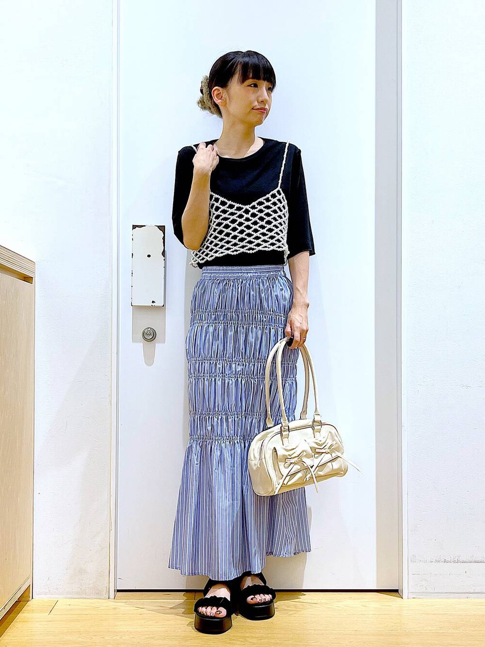 あおき@LAKOLE海老名(LAKOLE イオン相模原ショッピングセンター)のサンダル「ギャザーボリュームサンダル / 114250」を使ったコーディネート