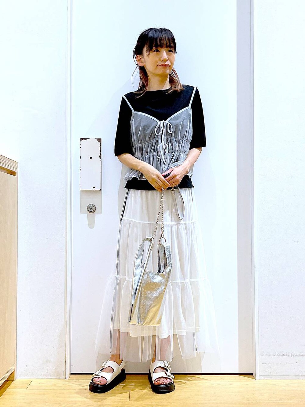 あおき@LAKOLE海老名(LAKOLE イオン相模原ショッピングセンター)のショルダーバッグ「ミニ2WAYチェーンショルダーバッグ / 104948」を使ったコーディネート