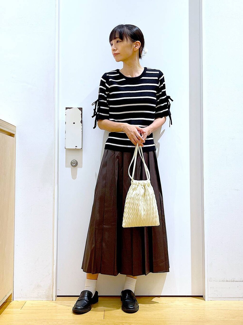 あおき@LAKOLE海老名(LAKOLE イオン相模原ショッピングセンター)のショルダーバッグ「ヘリンボン巾着ショルダーバッグ / 132239」を使ったコーディネート