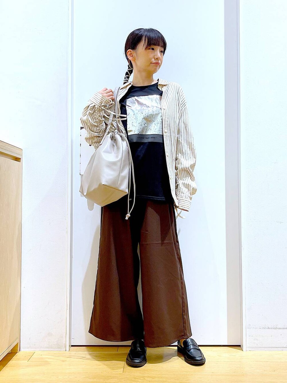 あおき@LAKOLE海老名(LAKOLE イオン相模原ショッピングセンター)のトートバッグ「フェイクレザー巾着トートバッグ / 132226」を使ったコーディネート