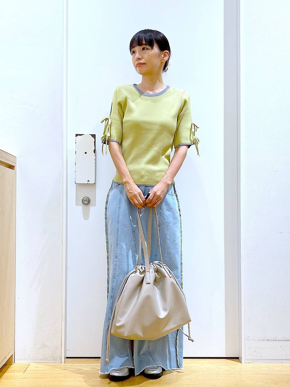 あおき@LAKOLE海老名(LAKOLE イオン相模原ショッピングセンター)のトートバッグ「フェイクレザー巾着トートバッグ / 132226」を使ったコーディネート