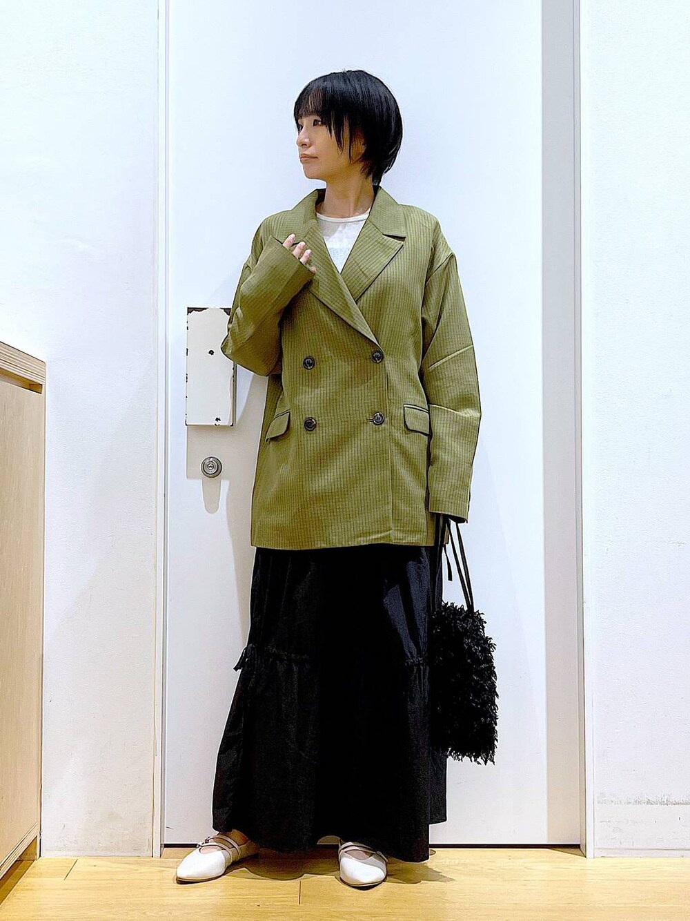 あおき@LAKOLE海老名(LAKOLE イオン相模原ショッピングセンター)のショルダーバッグ「フェザー巾着ショルダーバッグ / 132245」を使ったコーディネート