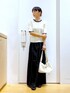 ご覧いただきありがとうございます** ◇アウトシームデニムスカート◇ Sサイズを着用しております♪ 深めに入ったスリットがポイントのデニムスカートです!ブラックはスッキリ見えの効果も抜群です☺︎サイドや裾の縫い方に特徴があり、ラインのようなデザインになっています◎足捌きは良く動きやすさ抜群です♡ 各アイテムのアップ画像や全角度、動画も載せています☺︎ ぜひお試しください**