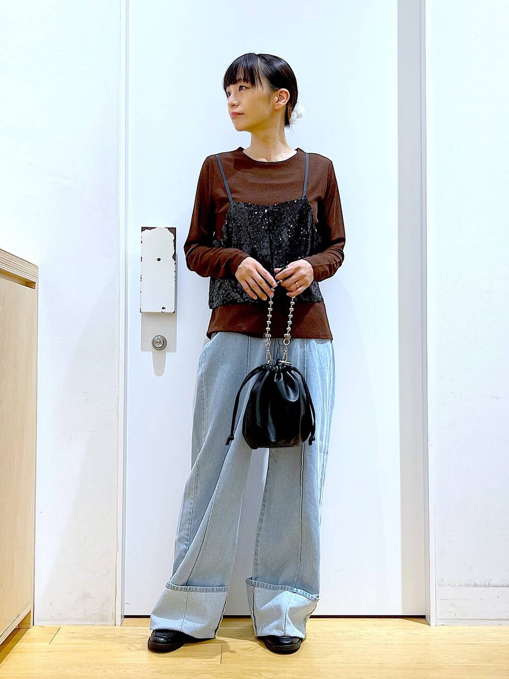 あおき@LAKOLE海老名(LAKOLE イオン相模原ショッピングセンター)のショルダーバッグ「チェーンハンドル2WAYショルダーバッグ / 132223」を使ったコーディネート