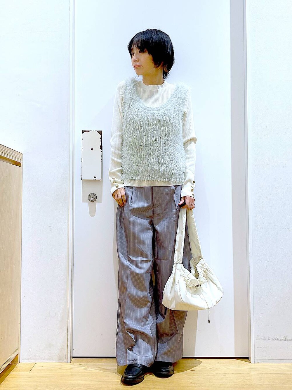 あおき@LAKOLE海老名(LAKOLE イオン相模原ショッピングセンター)のニット/セーター「12ゲージリブ袖ボタンプルオーバー / 116714」を使ったコーディネート