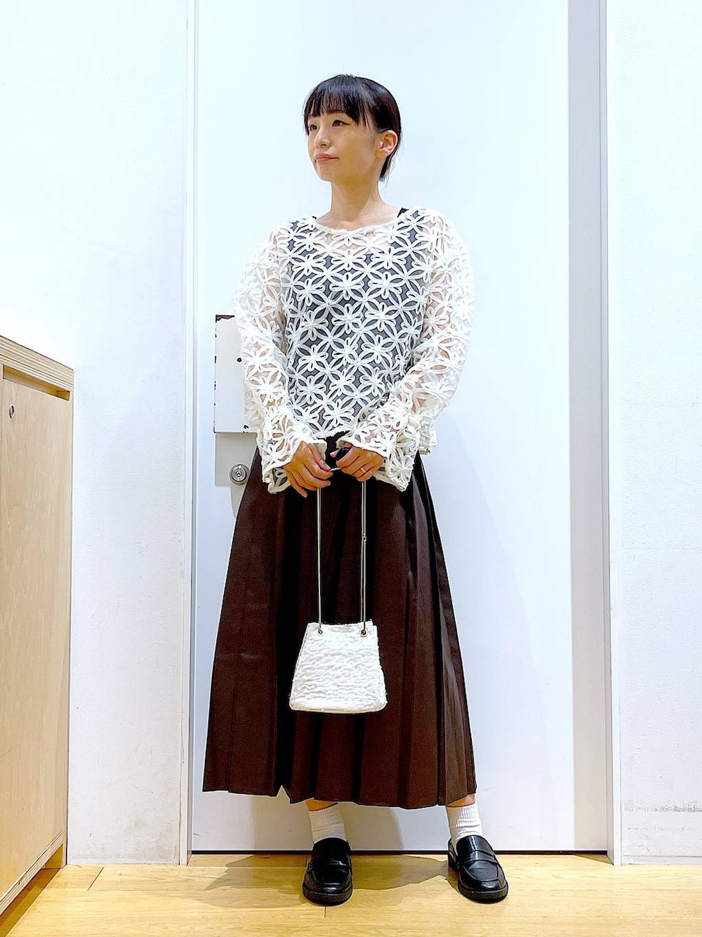 あおき@LAKOLE海老名(LAKOLE イオン相模原ショッピングセンター)のショルダーバッグ「スパンコール巾着ショルダーバッグ / 129909」を使ったコーディネート