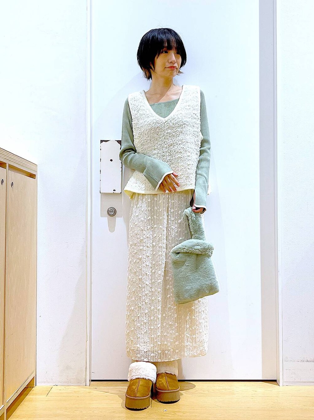 あおき@LAKOLE海老名(LAKOLE イオン相模原ショッピングセンター)のニット/セーター「12ゲージリブスクエアネックプルオーバー / 116709」を使ったコーディネート