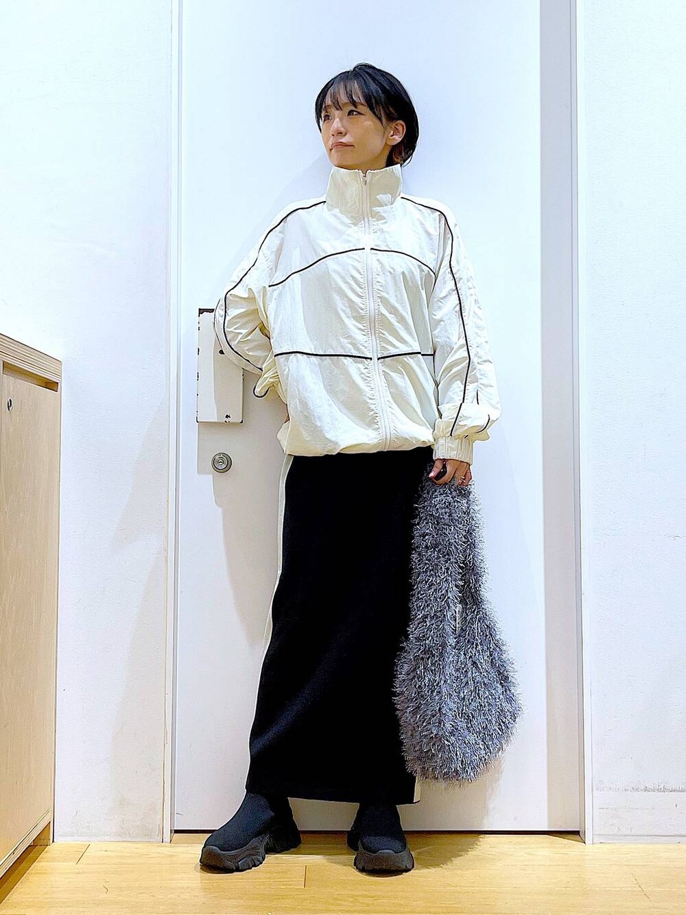 ご覧いただきありがとうございます** ◇コードライントラックジャケット◇ フリーサイズです♪ シャカシャカしたナイロン素材でスポーティ要素をプラスできるジャケットです♡裾のドローコードを絞ってスッキリとしたシルエットに変えられます◎ 各アイテムのアップ画像や全角度、動画も載せています☺︎ ぜひお試しください**