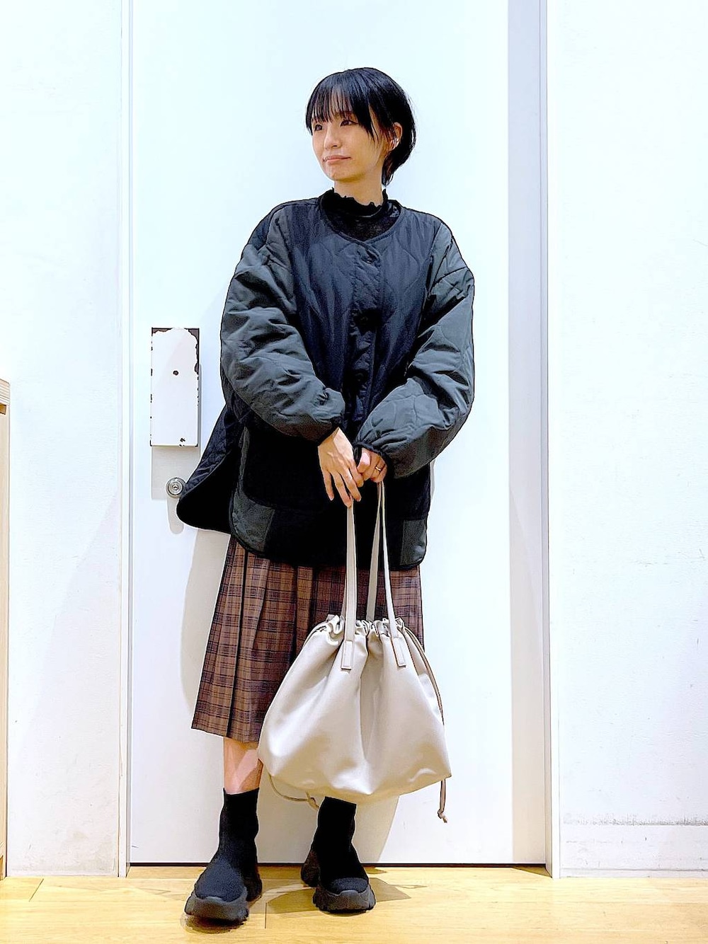 あおき@LAKOLE海老名(LAKOLE イオン相模原ショッピングセンター)のトートバッグ「フェイクレザー巾着トートバッグ / 132226」を使ったコーディネート