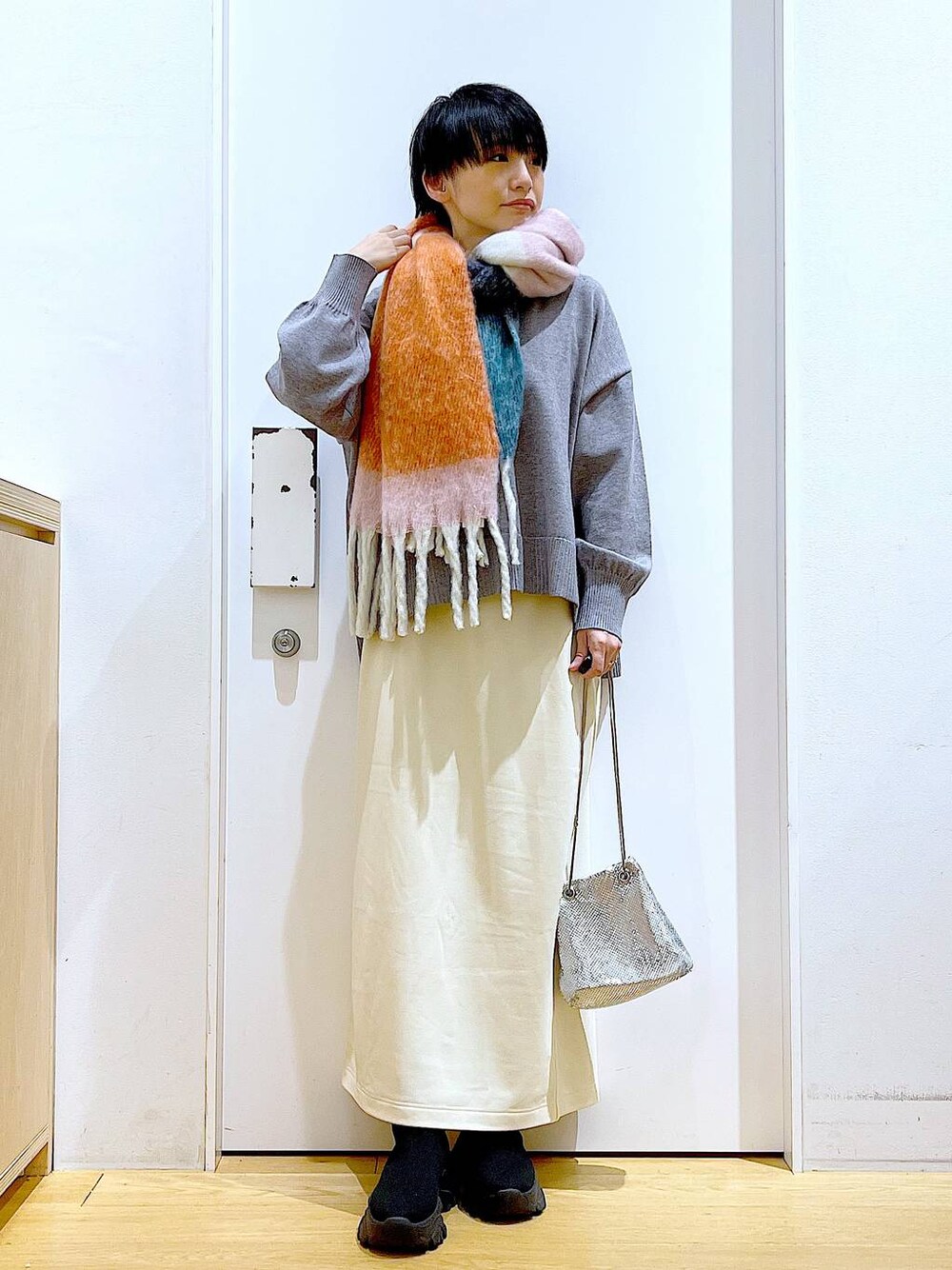あおき@LAKOLE海老名(LAKOLE イオン相模原ショッピングセンター)のマフラー「ブークレーボーダーマフラー / 138790」を使ったコーディネート