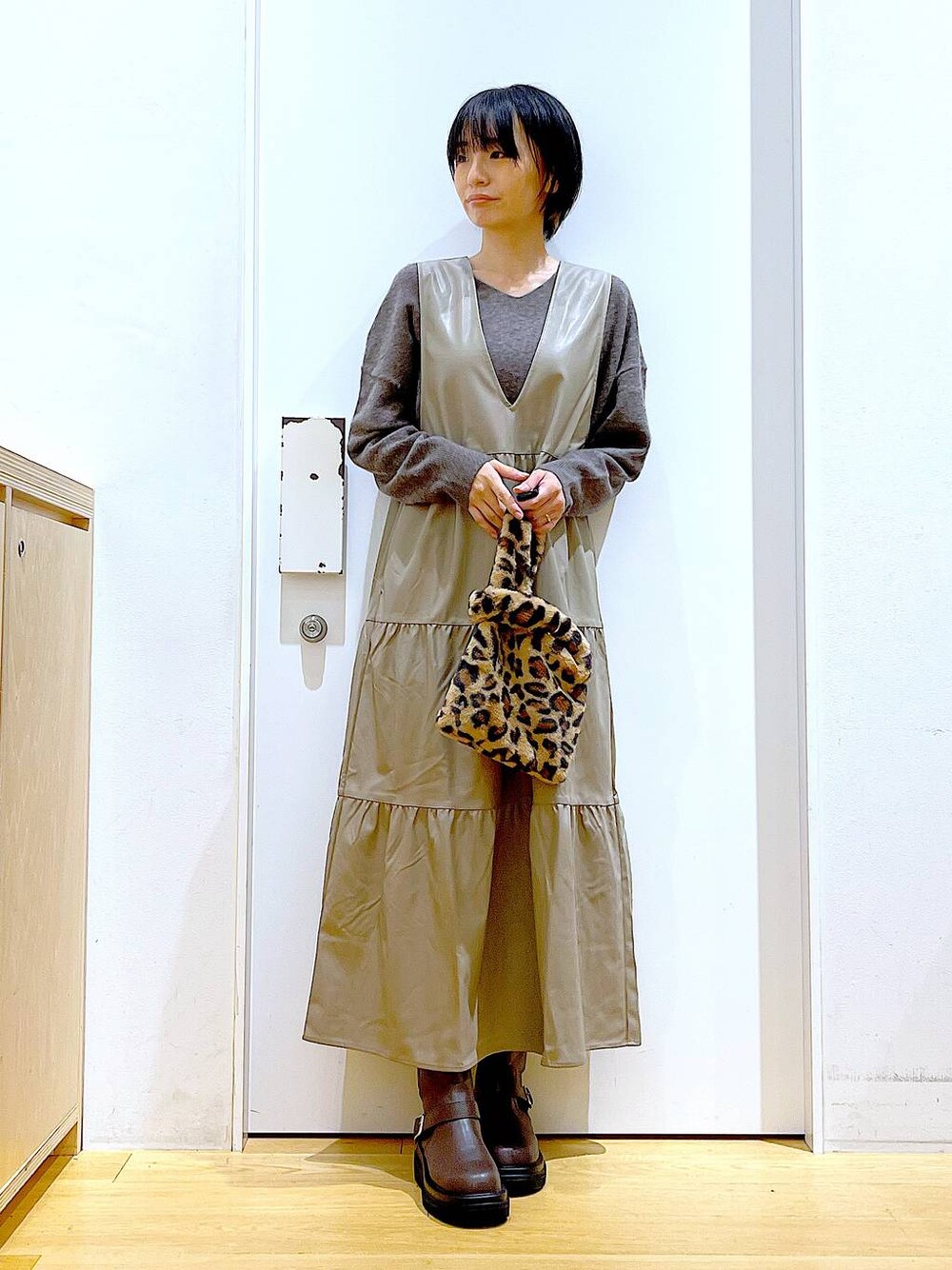 ご覧いただきありがとうございます** ◇FLティアードワンピース◇ Sサイズを着用しております♪ Aラインに広がるボリュームたっぷりのワンピースです♡フェイクレザーの素材なので幼くならずにスタイルが決まります◎背中はリボン仕様になっており、バックスタイルもこだわりのある一着です!! 各アイテムのアップ画像や全角度、動画も載せています☺︎ ぜひお試しください**