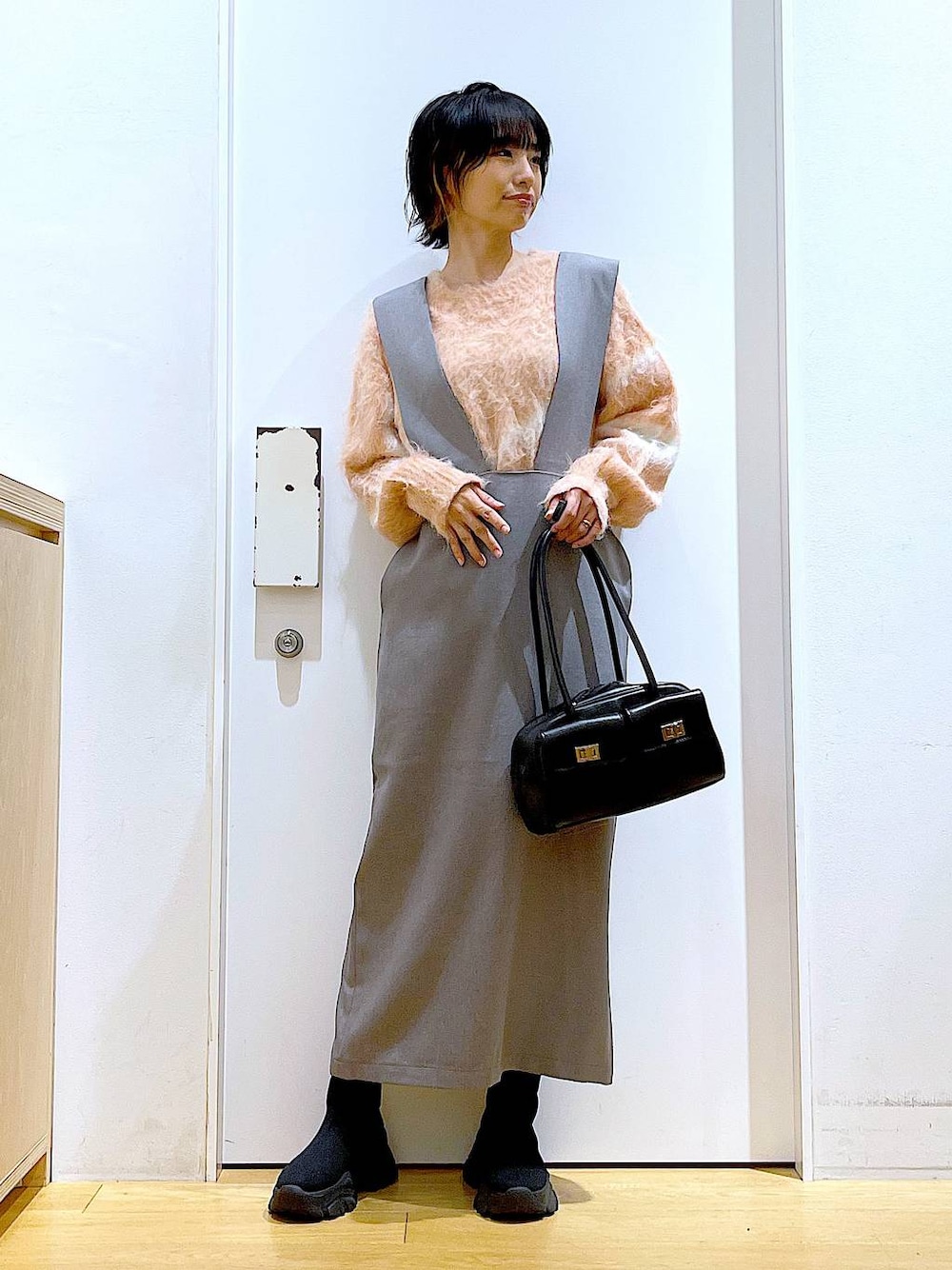 ご覧いただきありがとうございます** 今回はお買い得になっているSALEアイテムでコーディネートしてみました!! ◇線柄シャギーニットプルオーバー◇ フリーサイズです♪ 大胆な柄がワンポイントのニットです! 身幅や袖回りはゆったりめ、裾はストンと落ち腰回りまでカバー出来ます◎ ◇ウールライクサロペット◇ Sサイズを着用しております♪ 大人っぽいシルエットのサロペットスカートです!胸あての部分が大きく開いていてスッキリとした見え方に◎裾はスリットが入っていて足捌きもスムーズです!! 各アイテムのアップ画像や全角度、動画も載せています☺︎ ぜひお試しください**