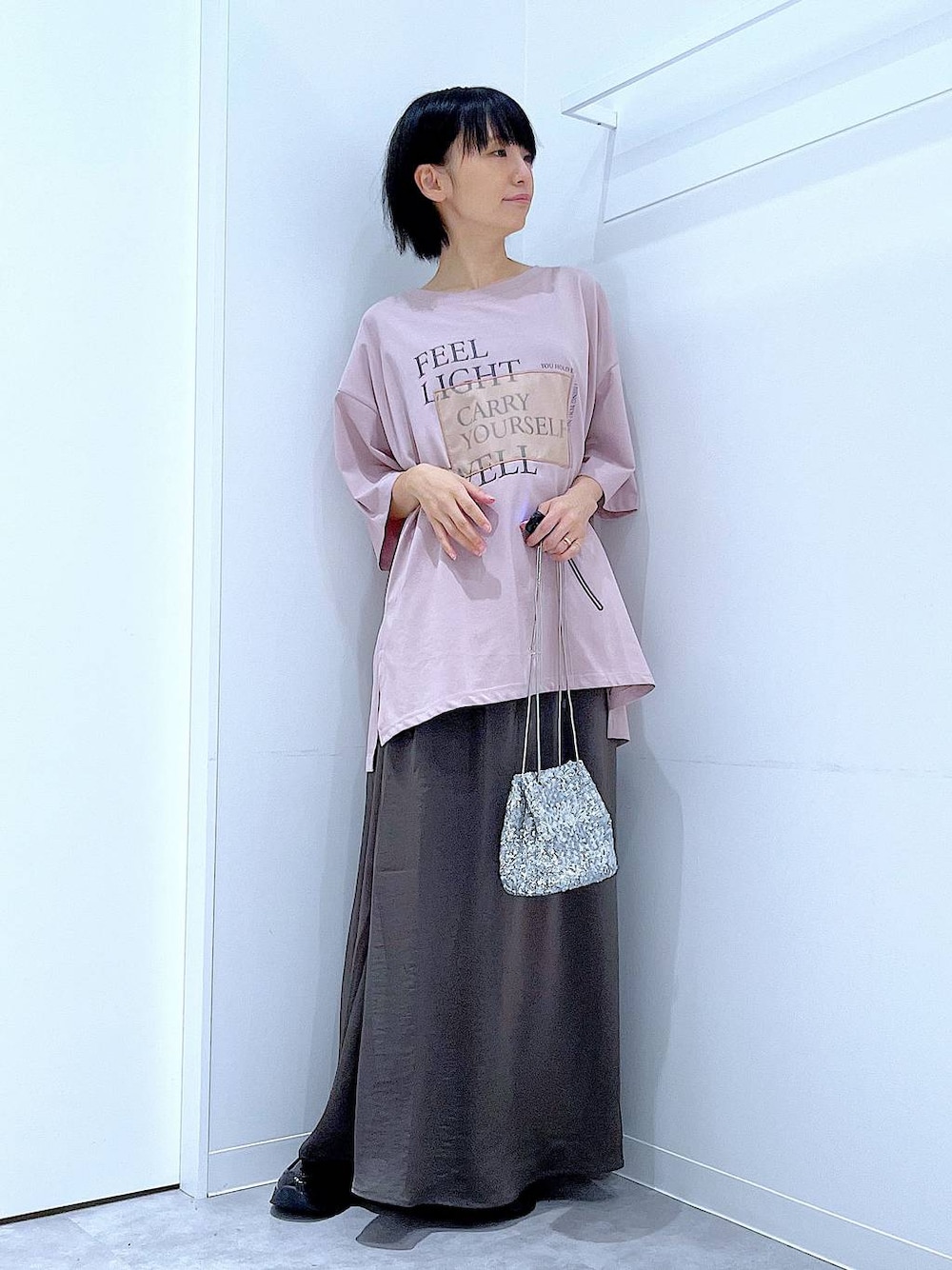 あおき@LAKOLE海老名(LAKOLE イオン相模原ショッピングセンター)のショルダーバッグ「スパンコール巾着ショルダーバッグ3 / 291939」を使ったコーディネート