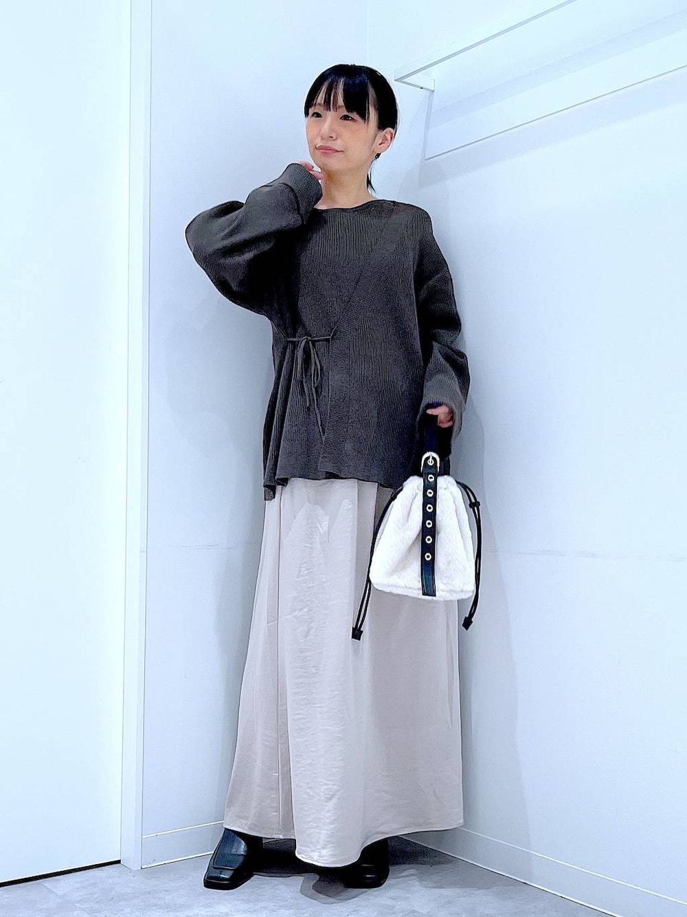 あおき@LAKOLE海老名(LAKOLE イオン相模原ショッピングセンター)のハンドバッグ「アイレット×ファー巾着バッグ / 579033」を使ったコーディネート