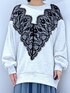 春先も使えるデザインスウェット🖤🩶 ご覧いただきありがとうございます** フロントに大きなレースのデザインが施されていてコーディネートのワンポイントになります👍程よいゆったりサイズでタイトスカートとも相性抜群です!春先も使える素材なので、長い期間でお召しいただけるのも嬉しいポイントです☺️ 【パッと選んでサッと着てシュッと出かける】 各アイテムのアップ画像や全角度、動画も載せています☺︎ ぜひお試しください**