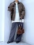 春先も着やすいアウターです🧥 ご覧いただきありがとうございます** かっこよくスタイリングが決まるオーバーサイズブルゾンです!フロントの大きめポケットも使いやすく便利👍ゆったりしているので着込んでも着膨れしません✨裾部分はゴム仕様でスッキリとしたシルエットになります🤎重さもなく軽い着心地です🫶 【パッと選んでサッと着てシュッと出かける】 各アイテムのアップ画像や全角度、動画も載せています☺︎ ぜひお試しください**