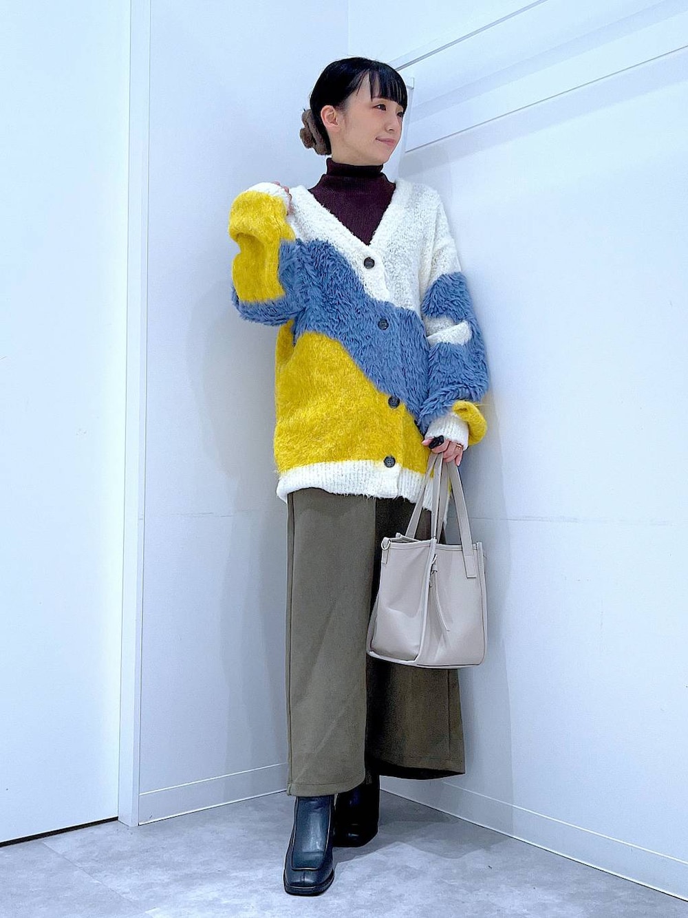 あおき@LAKOLE海老名(LAKOLE イオン相模原ショッピングセンター)のカーディガン/ボレロ「インターシャ配色カーディガン / 583726」を使ったコーディネート