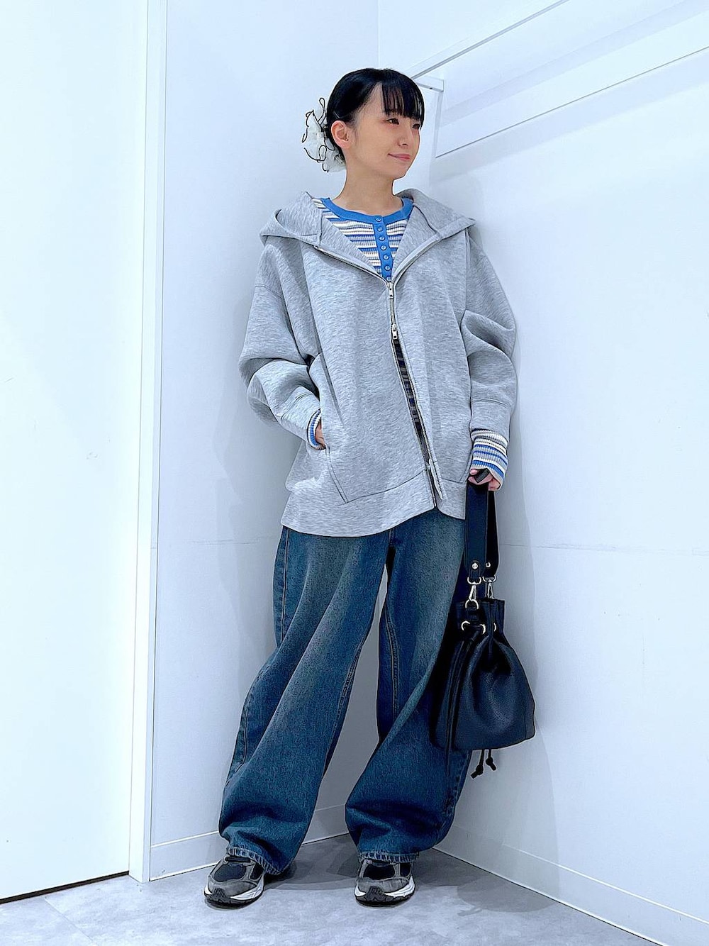 あおき@LAKOLE海老名(LAKOLE イオン相模原ショッピングセンター)のデニムパンツ「オーバーダイカーブデニム / 147147」を使ったコーディネート