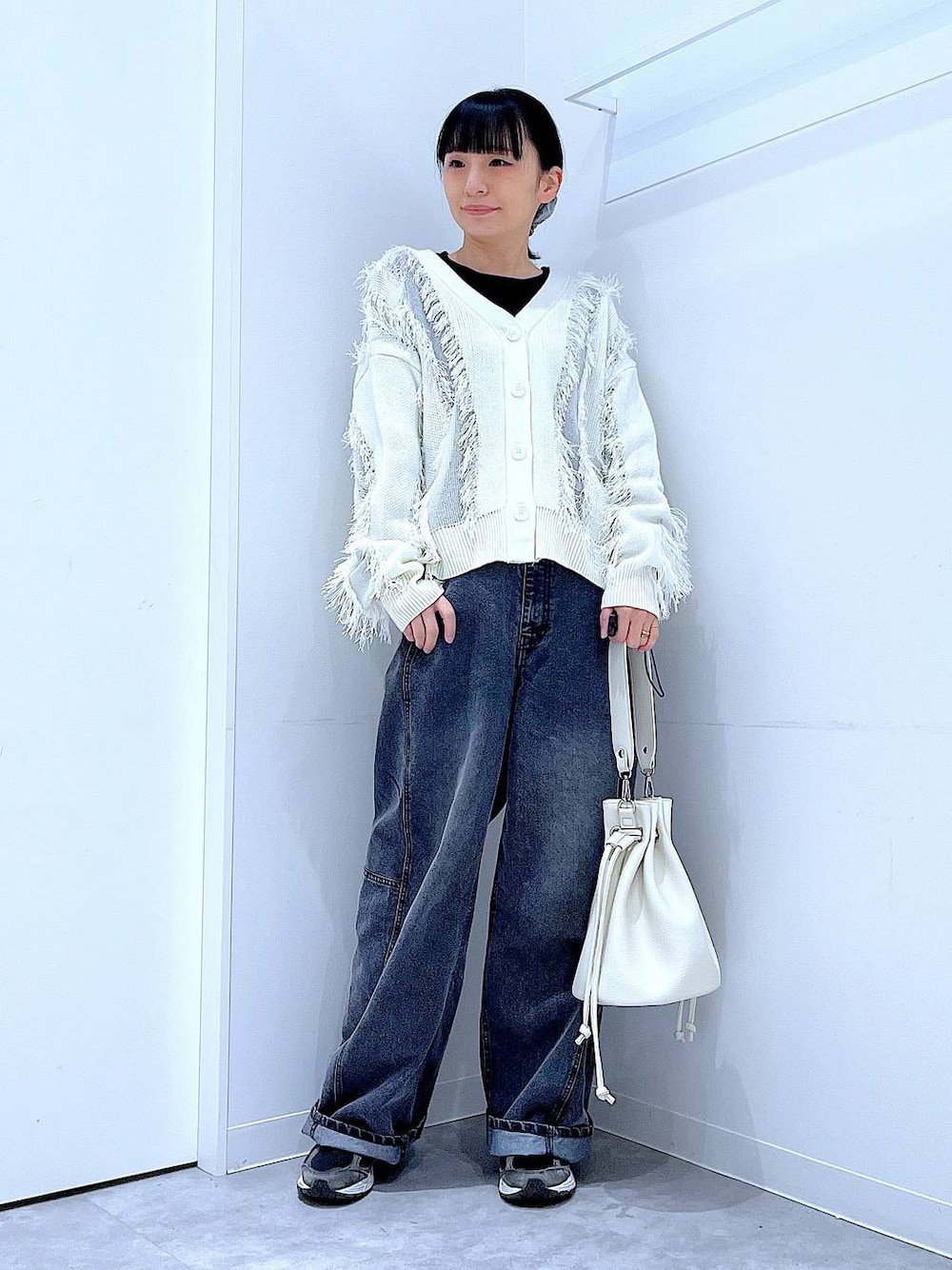 フリンジがポイントになるデザインカーディガンです✨ ご覧いただきありがとうございます** 全体に施されたフリンジデザインがアクセントになるカーディガンです🫶着丈はスッキリ、お袖や身幅はゆとりがあるので身体のラインを拾わず華奢見えします👍 【パッと選んでサッと着てシュッと出かける】 各アイテムのアップ画像や全角度、動画も載せています☺︎ ぜひお試しください**