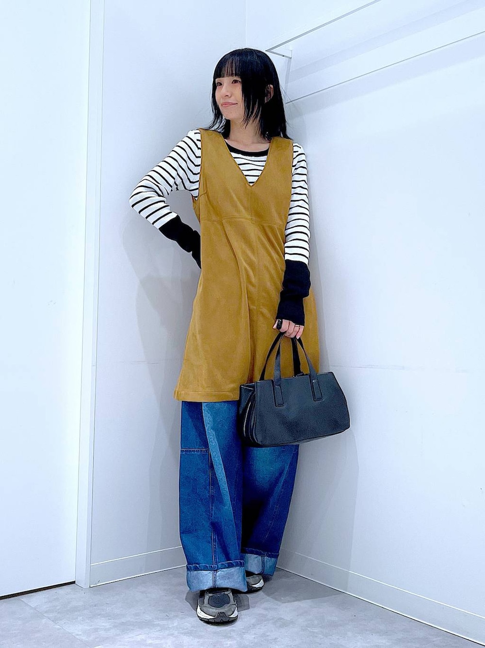 デニムと合わせてレイヤードスタイルに🫶🏻 ご覧いただきありがとうございます** 大人のレイヤードに最適なミニワンピースです✨ 深めのVネックが顔周りをスッキリ見せ、程よいAラインのシルエットで腰まわりをカバーしてくれます💪🏻 【パッと選んでサッと着てシュッと出かける】 各アイテムのアップ画像や全角度、動画も載せています☺︎ ぜひお試しください**