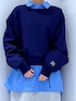 スッキリシルエットのスウェットです🟦 ご覧いただきありがとうございます** コンパクトな着丈でレイヤードスタイルにも👍 さりげなくお袖に入った刺繍が可愛いです🪡 今回は中にシャツ合わせで着てみました🫶🏻 【パッと選んでサッと着てシュッと出かける】 各アイテムのアップ画像や全角度、動画も載せています☺︎ ぜひお試しください**