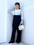 お袖の配色が可愛いです🟦⬜️ ご覧いただきありがとうございます** 襟と袖部分が配色デザインになった切替がアクセントのカットソーです💕切替部分がメッシュ素材なので、軽やかな雰囲気で着用いただけます☝️ 【パッと選んでサッと着てシュッと出かける】 各アイテムのアップ画像や全角度、動画も載せています☺︎ ぜひお試しください**