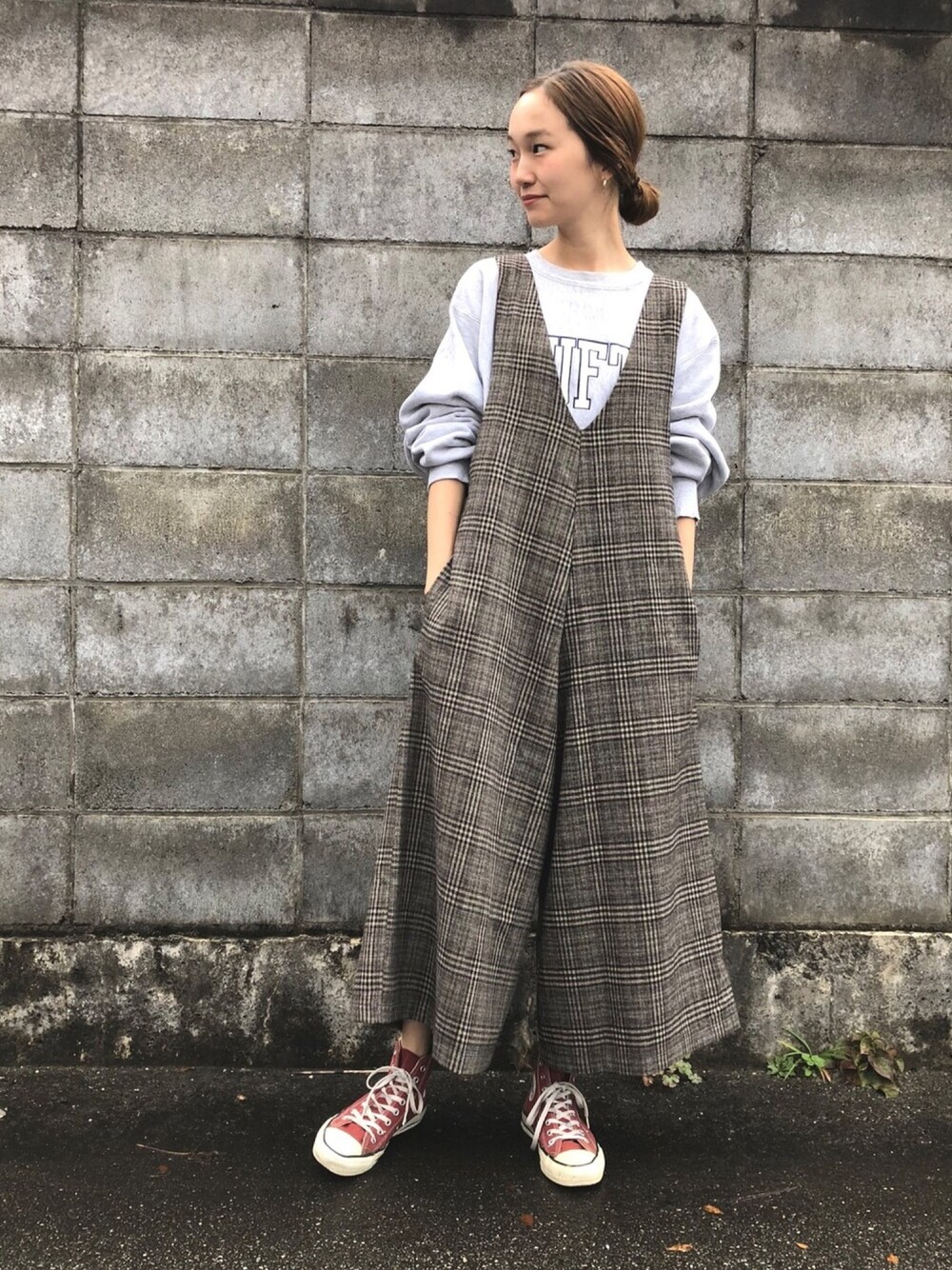 ワイドシルエットのサロペットに、オーバーサイズのスウェットを合わせてラフなスタイルに☺️🕊