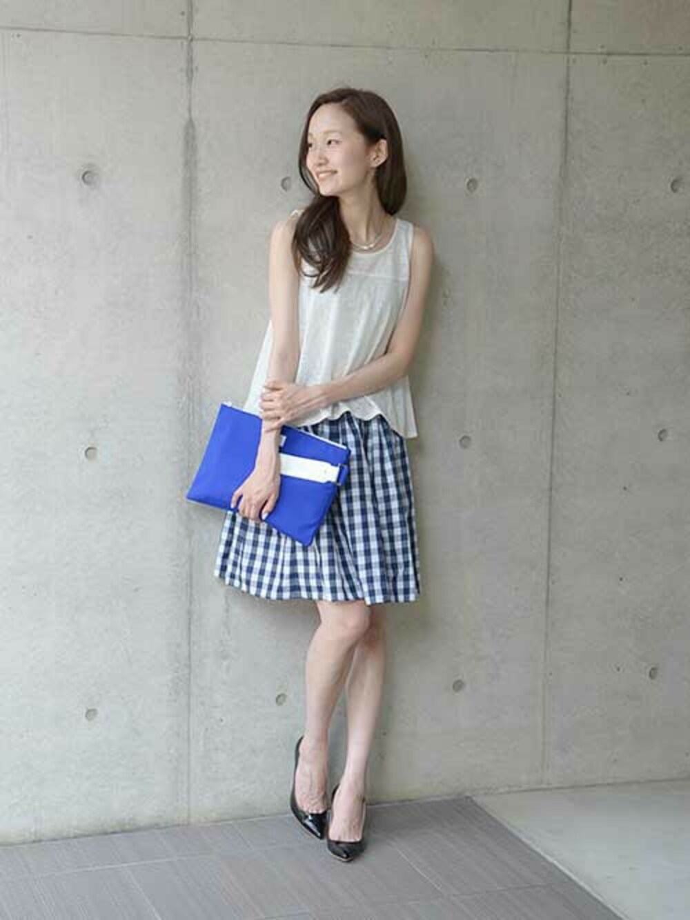 着回し力の高い新作アイテム。セットアップワンピースとレイヤードワンピースをそれぞれ別アイテムと組み合わせて、夏らしいコーディネートを。 ギンガムチェックのスカートはたっぷりとしたボリューム感とフレアシルエットが可愛い仕上がり。 トップスをミニマルにまとめて足元をヒールパンプスで飾ればレディな印象に!!