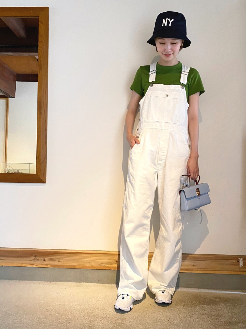 バケットハットとオーバーオールでストリートコーデに◎ メンズライクになり過ぎない様に、バッグできちんと感を☺️👌🙆🏻♀️ 💐Instagram →m_ooo💐